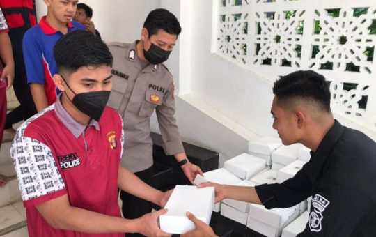Jumat Berbagi, Polda Kaltim Bagikan Nasi kotak Pada Jamaah Masjid