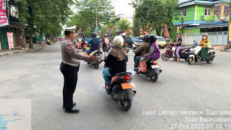 Seperti halnya pada Jumat 27/10/2023 pagi, terlihat personel Polresta Balikpapan Selatan mengatur Arus Lalu Lintas di sepanjang jalan Jendral Sudirman Balikpapan.