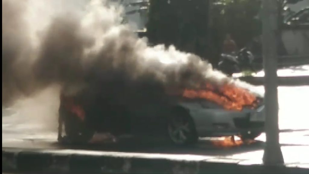 Berhenti Mendadak, Mobil Mazda Terbakar di MT Haryono