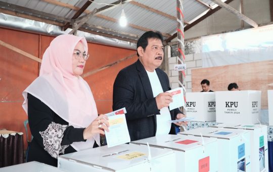 BALIKPAPAN, Metrokaltim.com - Ketua DPRD Kota Balikpapan Abdulloh bersama istrinya Yulianti dan keluarganya melakukan pemilihan suara di Tempat Pemungutan Suara...