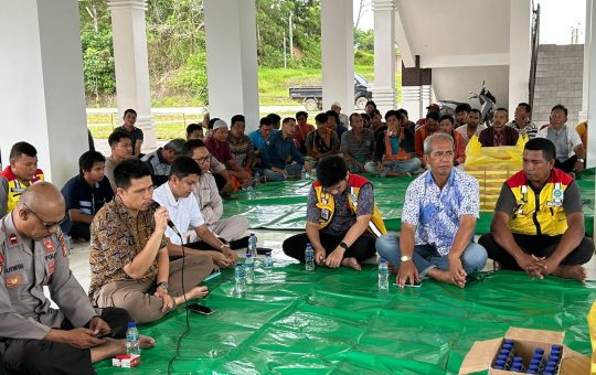 PPU, Metrokaltim.com - Personel Ditsamapta Polda Kaltim laksanakan Doa bersama, Tasyakuran dan silaturahmi bersama Pekerja di Kawasan Proyek Jembatan Pulau...
