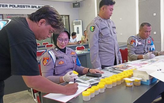 BALIKPAPAN, Metrokaltim.com - Ada pemandangan lain di halaman belakang Mapolresta Balikpapan, Rabu (03/01/2024). Puluhan anggota Polresta Balikpapan menjalani tes urine....