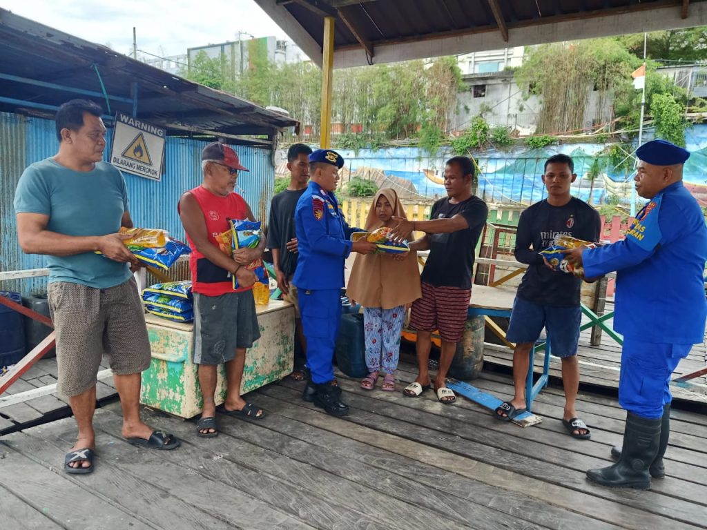 Ditpolairud Polda Kaltim Edukasi Nelayan dan Salurkan Bantuan di Pesisir Sungai Kelurahan Damai