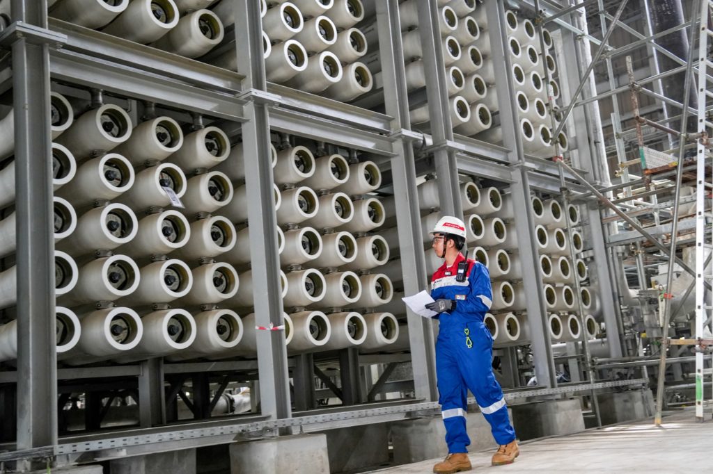 Fasilitas Sea Water Intake (SWI) yang dilengkapi tiga pompa berkapasitas total 22.500 meter kubik per jam (m³/jam) mengalirkan air laut ke lima unit SWRO berkapasitas 4.115 m³/jam. Teknologi Reverse Osmosis yang digunakan memanfaatkan membran berpori halus untuk menyaring garam dan partikel halus, menghasilkan air tawar berkualitas tinggi bagi berbagai kebutuhan kilang.