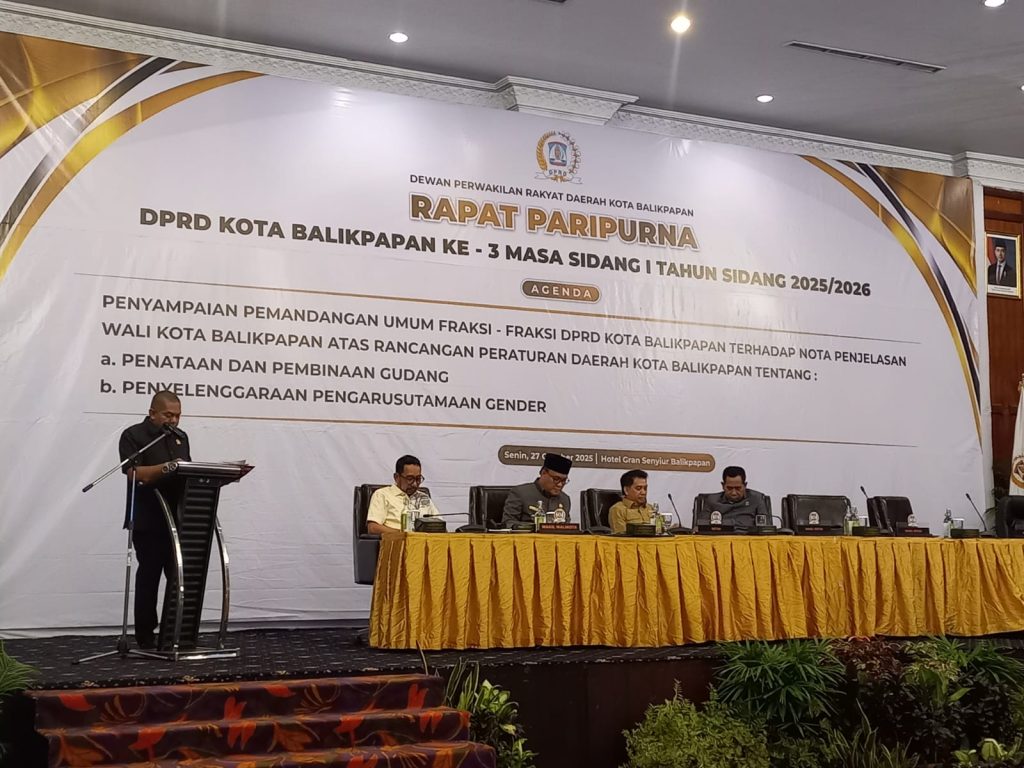 Penegasan ini disampaikan dalam rapat paripurna DPRD terkait Nota Penjelasan Wali Kota mengenai Rancangan Peraturan Daerah (Raperda) tentang Penataan dan Pembinaan Gudang serta Penyelenggaraan Pengarusutamaan Gender, yang digelar di Hotel Grand Senyiur Balikpapan, Senin (27/10/2025).