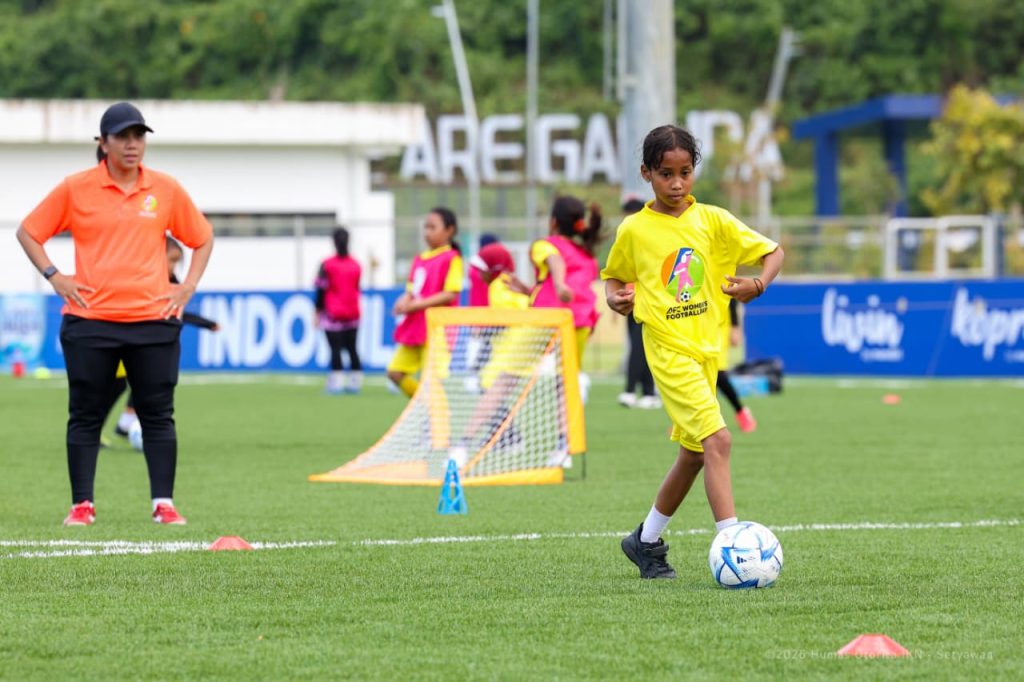 ebanyak 140 siswi dari jenjang SD hingga SMP di wilayah delineasi IKN secara antusias mengikuti AFC Women’s Football Day 2026 di PSSI Training Center IKN. Foto: Ist