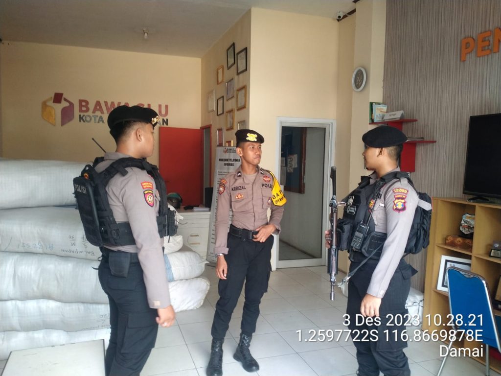 Kegiatan Pengamanan di kantor Bawaslu Kota Balikpapan dengan jumlah sebanyak 4 personel Polresta Balikpapan dipimpin oleh Pa Posko Ipda Khoirul Umam.