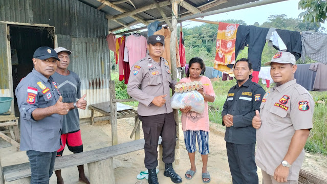 Aiptu Wempi, Bhabinkamtibmas yang kesehariannya bertugas di Kelurahan Graha Indah, Balikpapan ini memberikan bantuan sosial berupa paket sembako kepada warganya yang kurang mampu.