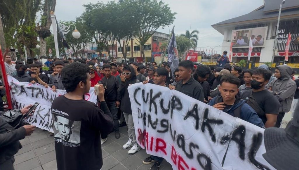 BALIKPAPAN , Metrokaltim.com – Gabungan mahasiswa dari berbagai perguruan tinggi di Kota Balikpapan menggelar aksi unjuk rasa di depan Kantor Pemerintah Kota Balikpapan, Senin (25/8). Aksi tersebut digelar sebagai bentuk protes terhadap sejumlah persoalan yang dinilai belum mendapat perhatian serius dari pemerintah kota, mulai dari kenaikan Pajak Bumi dan Bangunan (PBB) hingga masalah banjir yang masih kerap melanda.