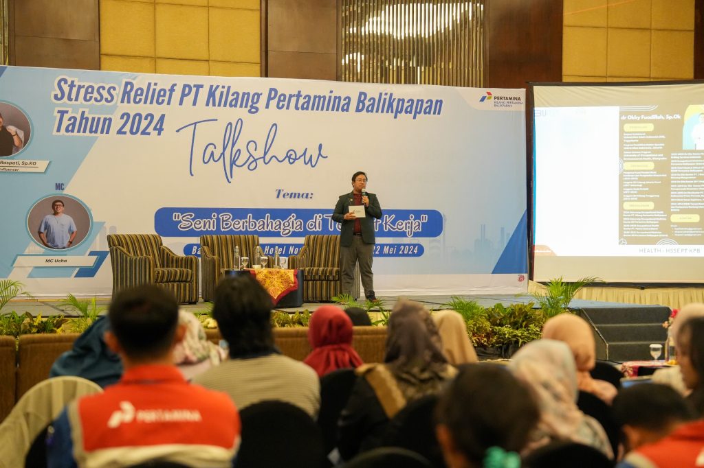 Guna meningkatkan kinerja yang semakin baik dan pengendalian stres bagi pekerjanya, PT Kilang Pertamina Balikpapan melalui Fungsi Medical mengadakan seminar dengan tema “Seni Berbahagia di Tempat Kerja” yang diselenggarakan pada Rabu (22/05) di Ballroom Hotel Novotel Balikpapan. Menghadirkan pembicara yang ahli di bidangnya yaitu dr. Santi Yuliani, M.Sc., Sp.KJ dan dr. Andhika Raspati, Sp.KO, seminar tersebut berlangsung meriah dan dihadiri Perwira PT KPB.