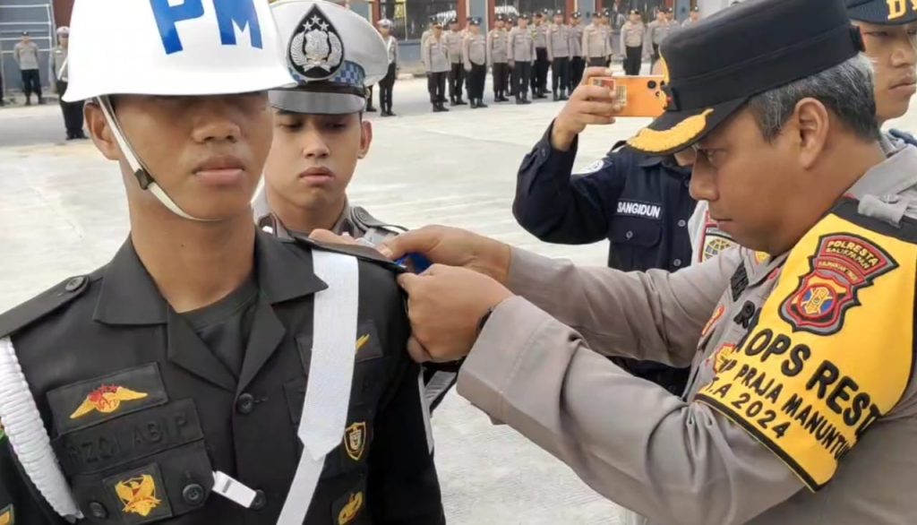 Penyematan Pita oleh Wakapolresta Balikpapan kepada personel menandai Operasi keselamatan Mahakam 2025 dimulai
