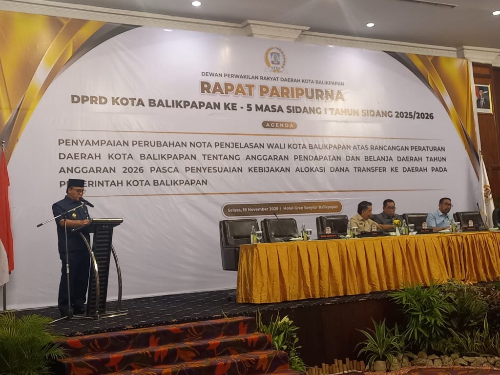 BALIKPAPAN, Metrokaltim.com – Pemerintah Kota (Pemkot) Balikpapan terpaksa melakukan penyesuaian besar dalam Rancangan APBD 2026 setelah pemerintah pusat mengubah alokasi Transfer ke Daerah (TKD). Hal ini disampaikan Wakil Wali Kota Balikpapan, Bagus Susetyo, dalam rapat paripurna DPRD yang digelar di Hotel Grand Senyiur, Selasa (18/11/2025).