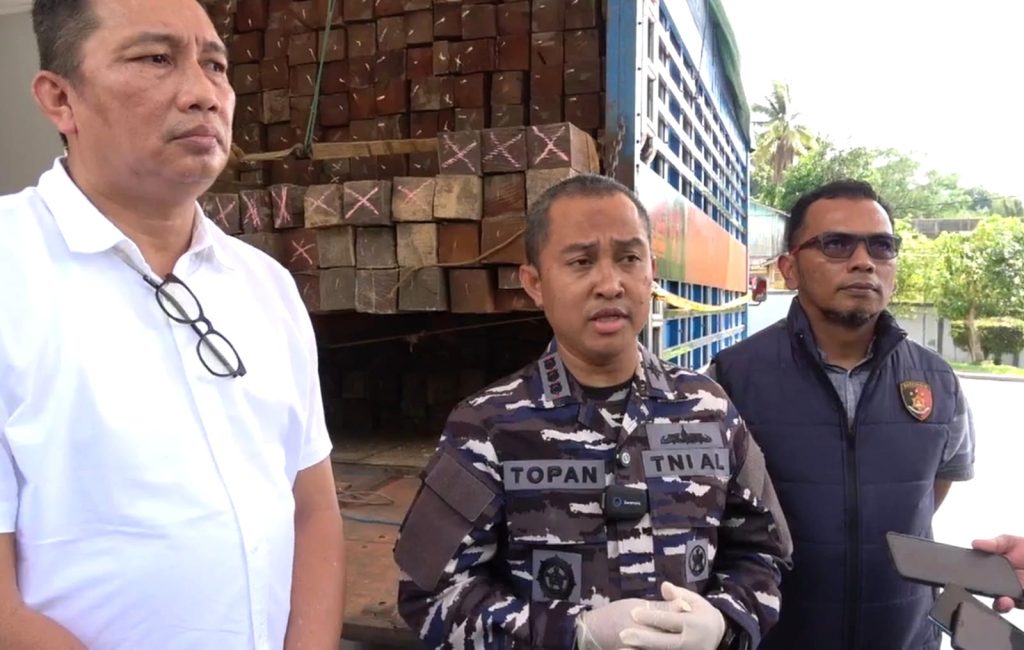 Sinergi TNI AL, kepolisian, dan aparat kehutanan dalam Operasi Satgas Samurai 26.1 berhasil membongkar dugaan jaringan kayu ilegal. Foto: Ries