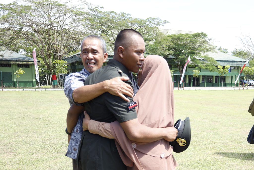 Haru dan bangga kedua orang tua melihat anaknya berhasil menjadi Abdi Negara. Foto Pendam VI Mlw.