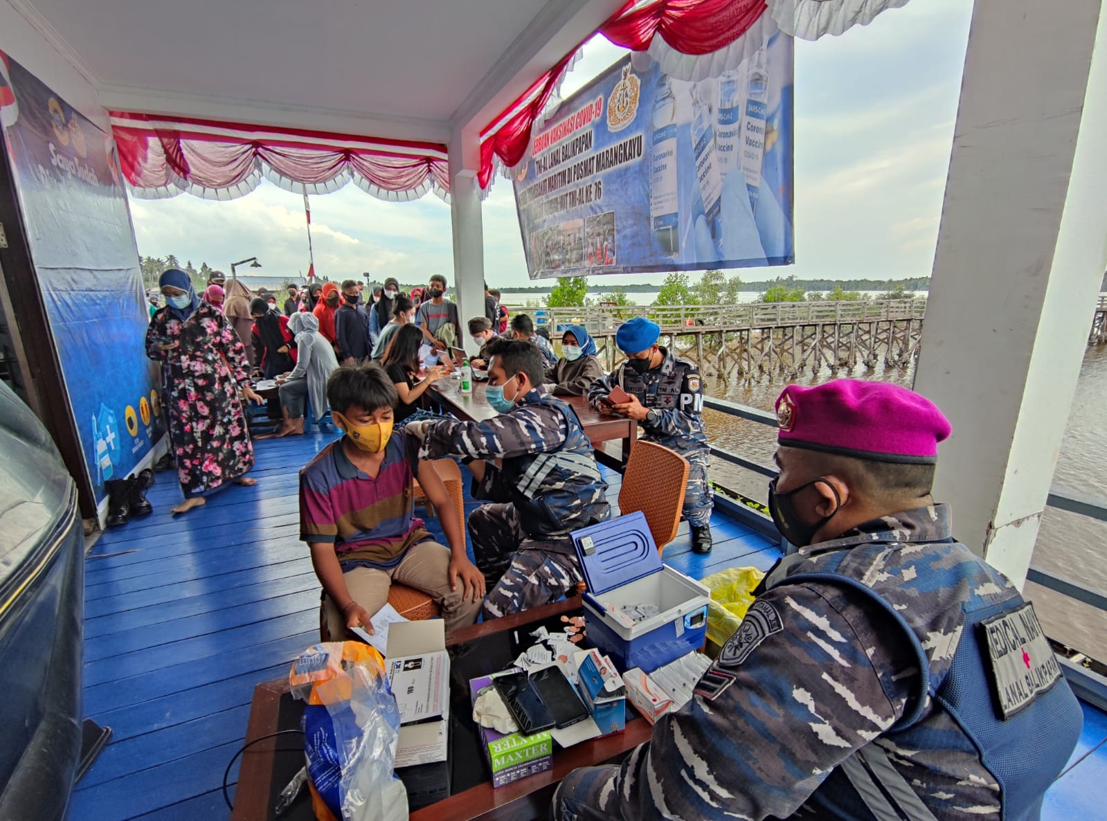Balikpapan, Metrokaltim.com – Sesuai intruksi Bapak KASAL Laksamana TNI Yudo Margono, S.E., M.M. bahwa TNI Angkatan Laut agar melaksanakan serbuan vaksinasi bagi masyarakat maritim di pelabuhan-pelabuhan umum, pelabuhan perikanan, pesisir pantai hingga ke pulau-pulau terpencil maka dan sekaligus menyambut HUT TNI AL Ke-76, Pangkalan TNI AL Balikpapan Gelar Serbuan Vaksinasi Masal jenis Sinovac sebanyak 110 dosis di Pos dan Posmat TNI AL Jajaran Lanal Balikpapan yang dipimpin langsung oleh Komandan Lanal Balikpapan Kolonel Laut (P) Siswo Widodo, S.T. Kegiatan serbuan vaksinasi kali ini diselenggarakan di Posmat TNI AL Marangkayu Lanal Balikpapan bagi masyarakat maritim sekitar Kampung Pangempang Kecamatan Muara Badak (2/9)