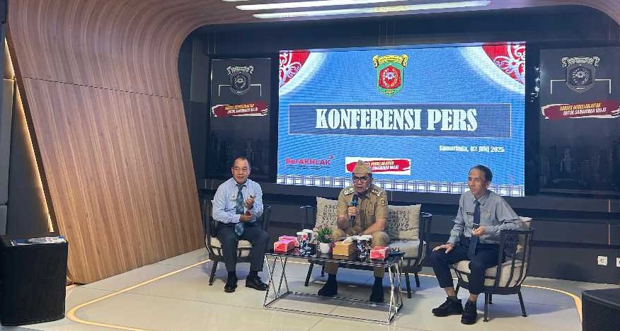 Wali Kota Samarinda, Andi Harun saat konferensi pers di Anjungan Karangmumus, Balai Kota, pada Senin (2/6/2025)/ist