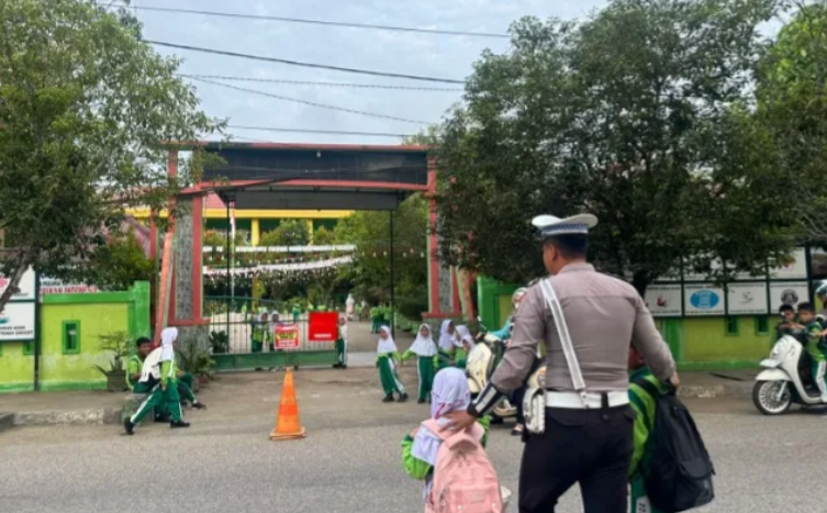 Personil Satlantas juga membantu menyeberangkan siswa, khususnya di depan sekolah dasar yang memiliki volume kendaraan tinggi. Langkah ini diambil untuk mengurangi risiko kecelakaan lalu lintas yang rentan terjadi di sekitar sekolah saat jam sibuk.