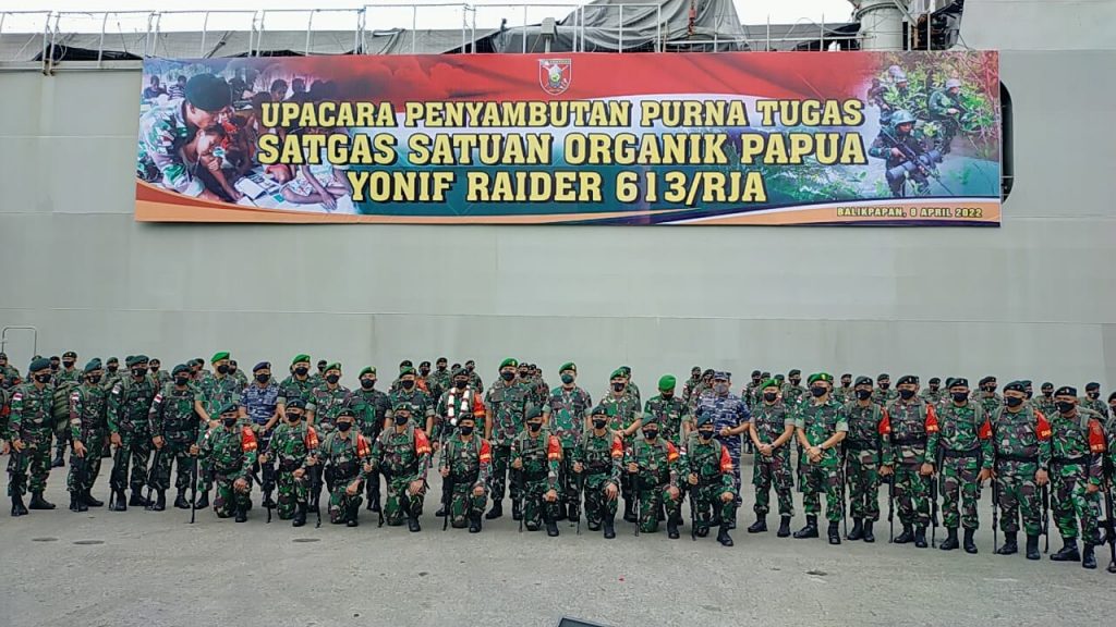 Balikpapan, Metrokaltim.com – Upacara Penyambutan Purna Tugas Satgas Yonif Raider 613/Raja Alam sebagai Satgas Satuan Organik Papua, dipimpin langsung Pangdam VI/Mlw Mayjen TNI Teguh Pujo Rumekso, yang dilaksanakan di Pelabuhan Semayang Balikpapan, Jum’at (8/4/2022) pagi.