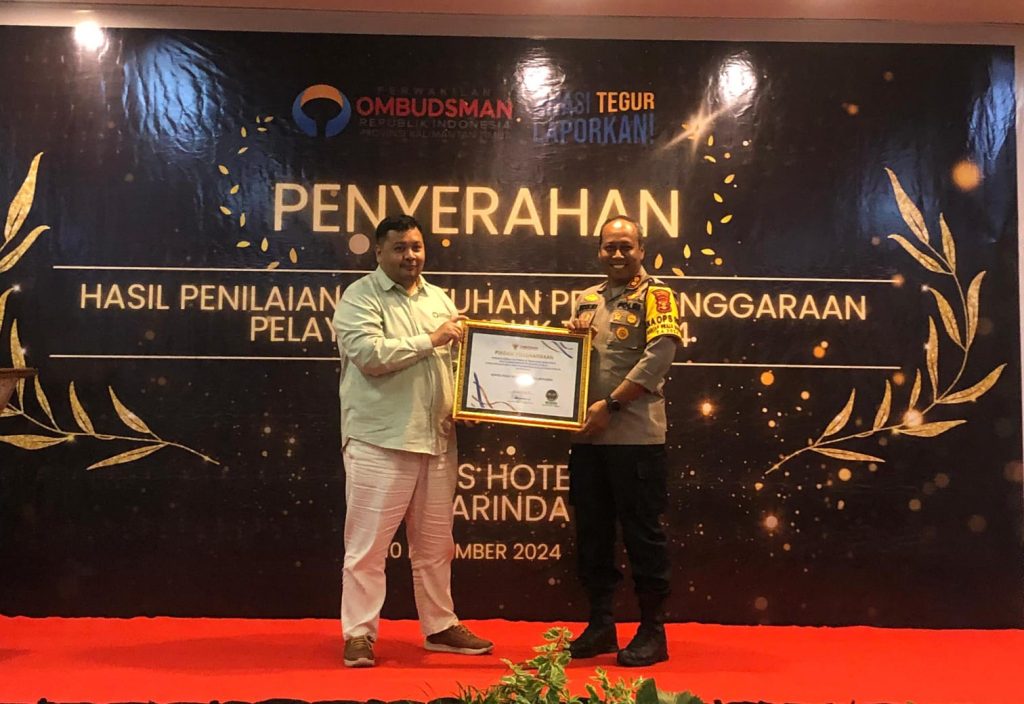 Pelaksanaan penyampaian Hasil penilaian kepatuhan penyelenggara pelayanan publik tahun 2024 jajaran Kepolisian di Wilayah Kalimantan Timur yang ada di lingkungan kepolisian Daerah Kalimantan Timur maupun Fasilitas pelayanan terpadu , baik dari kecepatan ,Keakuratan , kenyamanan masyarakat serta pelayanan kenyamanan lainnya yang ada serta ter akreditasi secara Resmi Badan Pelayanan Publik . Kegiatan bersama Ombudsman RI serta Instasi terkait selaku mitra Polri .